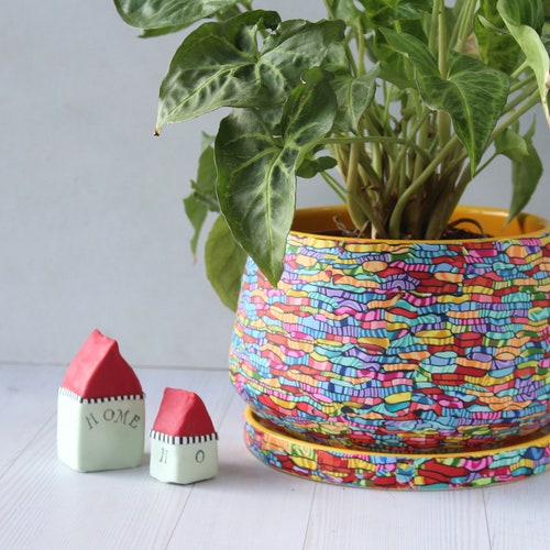 Colorful Indoor Pot For Plants With A Drainage Saucer Bright Etsy Uk